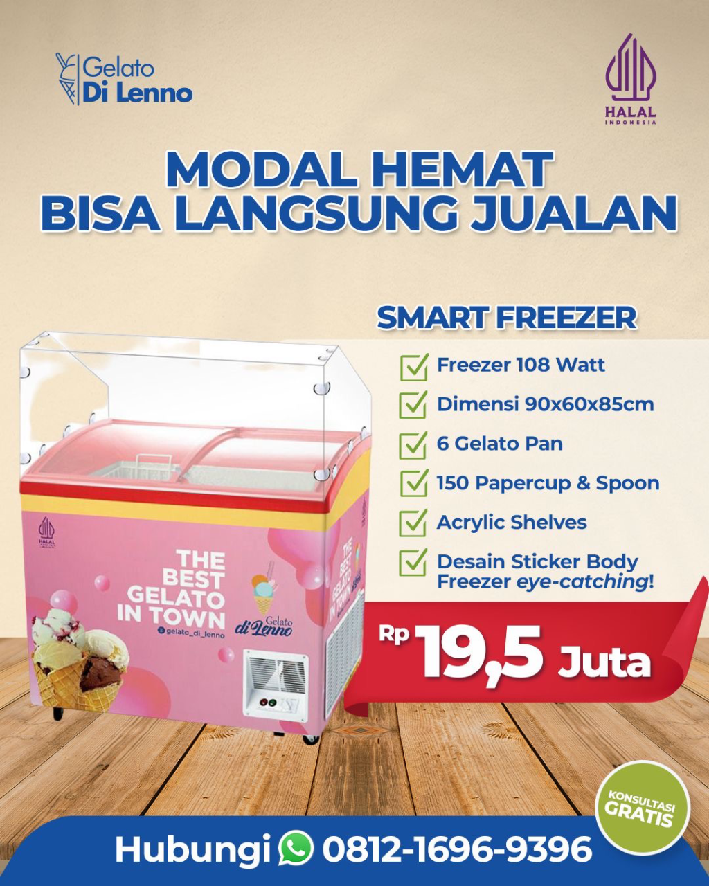 Paket kemitraan sudah termasuk dengan freezer, gelato dan peralatan pendukung, sehingga sudah siap untuk jualan